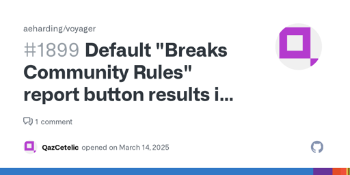 arrow-up11external-linkVoyager's default “Breaks Community Rules” report button results in many vague reportsplus-squaregithub.comqaz@lemmy.worldEnglish · edit-24 months agomessage-square0linkfedilink
