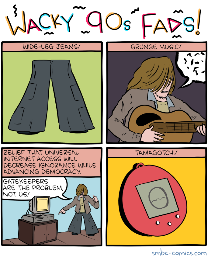 I’m a white cisgender man and yet I just don’t have the same happy memories of the internet at that time period that a lot of people do. I saw a lot of bullshit back then, and people wonder why it’s so prevalent in the tech community now: because it was back then, too.