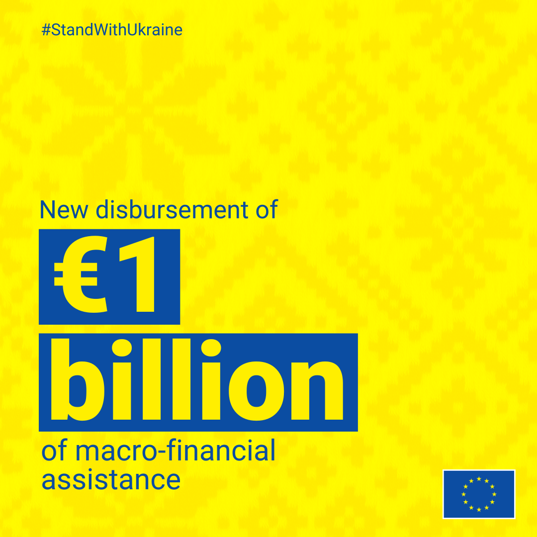 European Commission disbursed the fourth tranche of EUR 1 billion in exceptional macro-financial assistance loans to Ukraine.