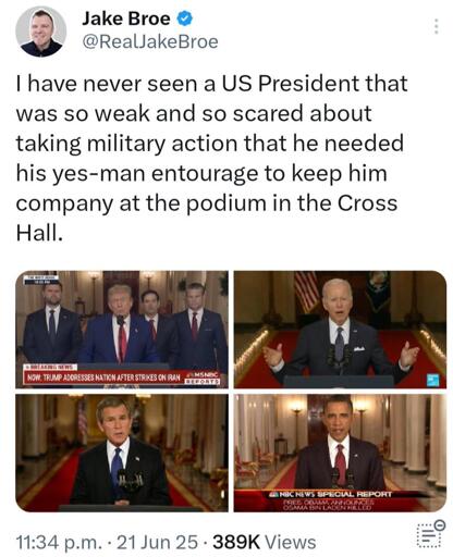 Fair. I dont remember the details, but I do remember that quote. I mostly remember Obama standing there alone announcing Bin Laden’s death. It was quite memorable for obvious reasons but also I was in a bar at my buddy’s 21st birthday hangout, and things for rowdy.