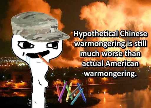 jackeroni@lemmy.ml to Memes@lemmy.ml · 26 days agoliberals: ChInA WaRMoNgerers!lemmy.mlimagemessage-square5linkfedilinkarrow-up142