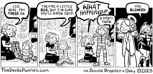The comic is sorta like a slice of life anime. Its basically a combination of diary of the artists life along with observations in a humorous way. The characters are her and her family but also thought characters mostly of the artist (although her husband has gotten at least a devil showing up once or twice) which has been slowly expanding. devil/angel/cavewoman/innerchild
